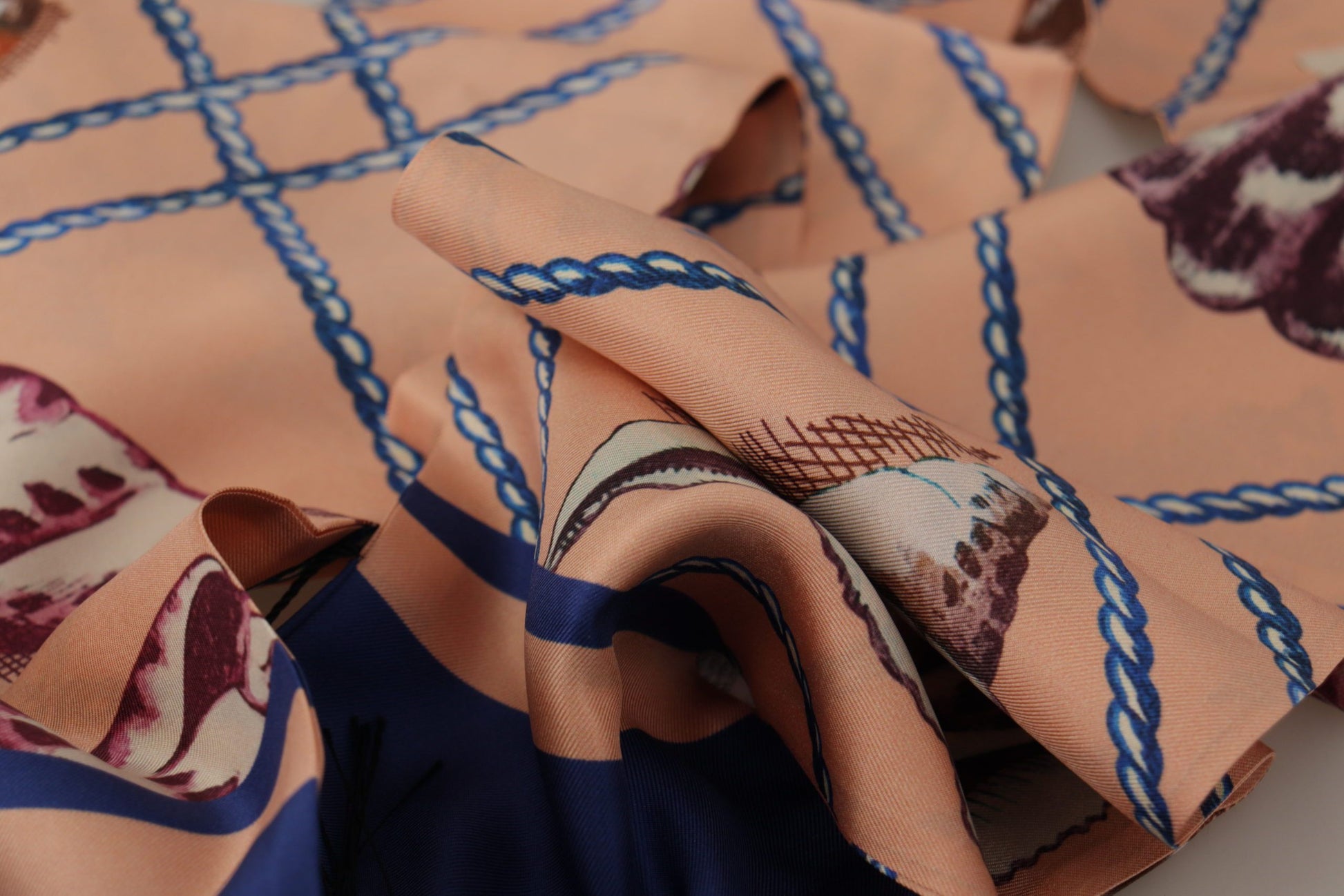 Dolce & Gabbana Multicolor Seashell Patterned DG Logo Shawl Fringe Silk Scarf